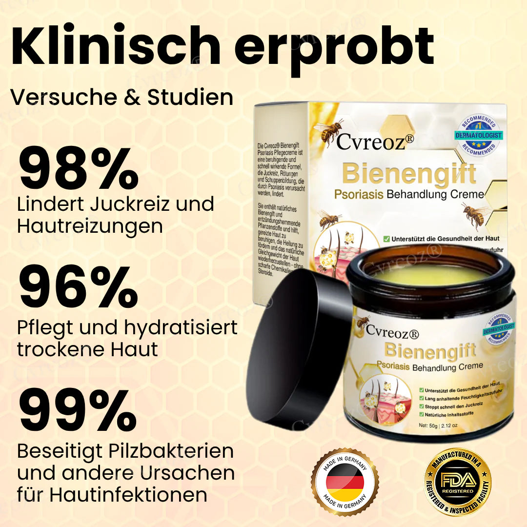 Verabschieden Sie sich vom Kreislauf aus Aufflammen und Frustration. Cvreoz® Bienengift Psoriasis Behandlung Creme ist eine von Dermatologen formulierte Lösung zur Linderung von Rötungen, Juckreiz und Schuppenbildung – ohne Steroide oder aggressive Chemikalien.